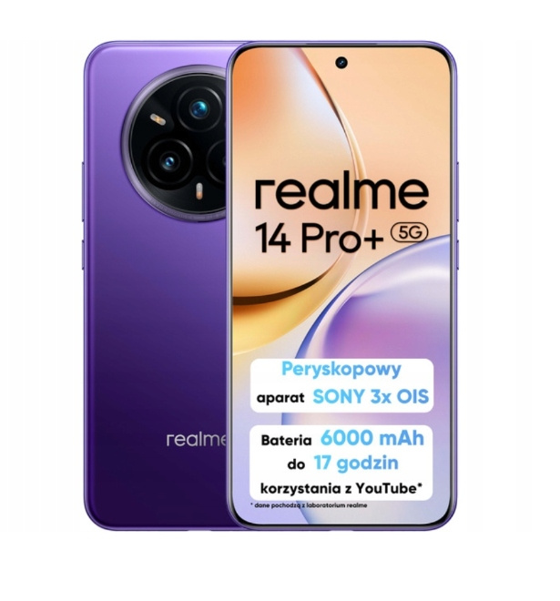 - Realme 14 Pro+ 5G 12/512 GB w kolorze fioletowym